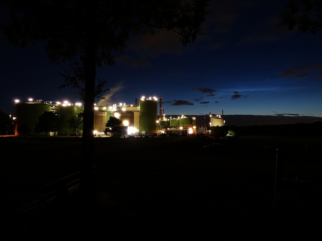 NLC-Display über den Industrie-Anlagen in Wesseling-Urfeld, aufgenommen am 06.06.2020 um 23:15 MESZ (eigenes Foto)